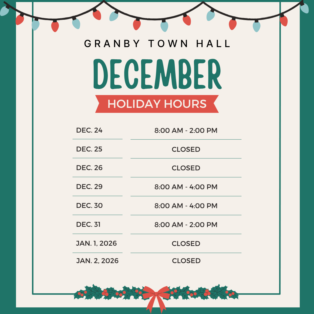 Granby Town Hall has special hours for the winter holidays: