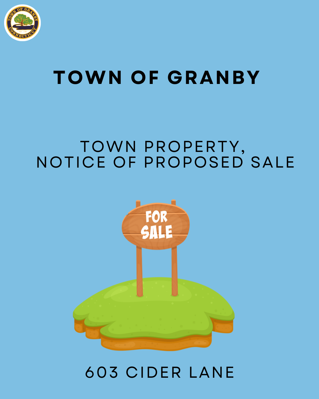 There is a proposed sale of 603 Cider Lane, which is a piece of Town of Granby property. The Board of Selectmen and Board of Finance have given their approval for the sale, in accordance with the Town Charter.